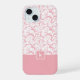 Blush Pink Damask Muster Monogram iPhone 14 Fall iPhone 15 Hülle