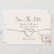 Rustikal, elegant, Aquarell Blütenrot Rosa und blau Hochzeit speichern Sie das Datum Einladung mit Silber Seilherz und trendige Drehbuch.