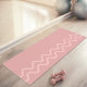 Destei's minimalist design of a modern layout in lovely muted blush pink color creating a peaceful setting for your practice. Two thick wavy lines in a slightly lighter tone add subtle movement along one edge, while the rest of the mat is left open to create a sense of space and clarity.
