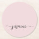 Blush Pink Monogram Name Script Chic Signature Runder Pappuntersetzer