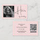Blush Pink Photo Black Script Hair QR Code Social Visitenkarte