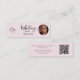 Elevate your beauty brand with this elegant makeup artist mini business card, featuring a soft blush background, modern handwritten script, minimalist beauty line art, and a customizable circular photo space.