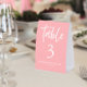 This blush pink wedding table number paper table tent brings a soft, romantic touch to your reception décor. Its gentle pastel tone creates an elegant and welcoming atmosphere that complements a wide range of wedding themes. The clean, modern typography keeps table numbers easy to read for guests while maintaining a refined aesthetic. Sturdy, high-quality paper ensures the tent stands beautifully throughout the celebration. The minimalist design allows the blush color to shine without overwhelming the table setting. It’s a graceful and stylish detail that adds charm and cohesion to your wedding décor.