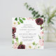 Unsere quadratische Blush Romance Hochzeitseinladung umgibt Ihre Hochzeitstage-Details mit einem Kranz von Aquarellblüten in Elfenbein, bordeauxfarbenen Marsala und Rosa, mit üppigen grünen botanischen Blätter und Blattwerk.