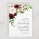 Eine elegante und moderne Hochzeitsreise mit Blumen bietet eine Kaskade von Aquarellfarben-Rose und Peonies in Elfenbein, Rosa und Bordeaux-Marsala mit üppigen grünen Botanicals und Blattwerk. Ihre Hochzeitsdetails sind rechts ausgerichtet in eleganter, schwarzer Schrift mit handgeschriebenem Schriftsatz.