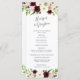 Unser zauberhaftes blumengeschmücktes Hochzeitsprogramm zeigt Ihre Zeremonie in elegantem, schwarzem Schriftzeichen, oben und unten gerahmt von Aquarellfarben-Blume in Rosa, Elfenbein und Bordeaux-Marsala. Auf der Rückseite finden Sie die Mitglieder Ihrer Hochzeitsfeier mit leicht bearbeitbaren Textfeldern. Koordiniert mit unserer Hochzeitskollektion Blush Romance. Verwenden Sie die Vorlagenfelder, um Ihre Zeremonie- und Brautparty-Informationen hinzuzufügen, und klicken Sie dann auf "Anpassen", um Elemente bei Bedarf neu zu positionieren.