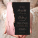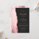 The left-hand edge of this elegant modern wedding invitation features a blush pink watercolor agate border trimmed with faux rose gold glitter. The customizable text combines rose pink handwriting, copperplate and italic fonts on a dark off-black background. The reverse side features a matching burgundy and rose gold agate design.