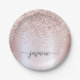 Girly Glam Blush Rose Gold Glitzer Metallic Monogram Name Signature Script Custom Personalisiert Paper Teller. Dieses Design mit Ihrem Vornamen in einem hübschen handgeschriebenen Stil Swash Schwanz Schriftart Signatur Typografie (oder Kalligrafie) auf rot rosa Rosa Imitate metallische Folie mit Glam funkel Glitzer Rand. Diese sind einfach zu anpassen. Ideal für die Hauswärmung, auch für Geburtstag, Hochzeit, 16 Geburtstagsparty, Brautparty, Junggeselinnen-Abschied, für die Abschlussfeier, Babydusche und Es ist für das Mädchen, das einzigartige funkelnde stilvolle Dinge Lieben.