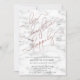 Dieses schöne, moderne Blush Rose Gold Script Marble Probe Dinner Einladung zeigt eine Imitate Rose Goldfolie-Schrift lesen "To Liebe, Lachen, and Happily Ever After" als Hauptdesign Element, über ein Imitat Carrera Marmor Textur Hintergrund. Das Design wird durch den modernen All Cap Sans Serif Schriftart ergänzt, der die Probe Abendessen Zeit, Datum und Lage detailliert beschreibt. Die Rückseite der Dinner-Einladung zeichnet sich durch eine schöne, schimmernde, rot-grüne Textur aus, um das schicke, raffinierte Aussehen zu vervollständigen. Design Copyright Anastasia, Lady of Lochaber and Glencoe, 2017. Alle Rechte vorbehalten.