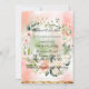 Was für ein schönes, weiches Design von Pinks, Grüntöne in Aquarellfarben-Blume. Der Kranz der Blume ist für diesen Hintergrund perfekt. Der winzige goldene Akzent am Ende der Einladung beendet ihn mit Klasse und Eleganz. So können Sie Ihre Familie und Freunde zu einem ganz besonderen Tag einladen.