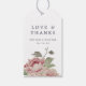 Bringen Sie diese eleganten Blumen-Tags an Ihre Gastgeschenke Hochzeiten, um sich bei den Gästen in schicken Stil zu bedanken. Weiße Tags sind mit einem Strauß von Pionieren und Rose in gedämpften Aquarelltönen in Rosa und Salbei grün, mit "Liebe und Dank" und Ihren Namen und Hochzeitstag. Der gesamte Text kann für eine ultimative Anpassung bearbeitet werden.