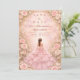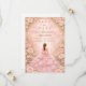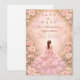 Dieses elegante Quinceañera-Design zeigt einen weichen, rosafarbenen Wasserfarbhintergrund, der von romantischen Rosen, zarten Blumen und subtilen goldenen Akzenten eingerahmt wird, mit einer eleganten Kleidillustration, die eine träumerische, raffinierte Atmosphäre schafft. Die pastellrosa Farbpalette und die floralen Details verleihen dem Design ein luxuriöses, aber jugendliches Gefühl und machen es perfekt für eine klassische Quinceañera-Feier mit einer romantischen, garteninspirierten Ästhetik.