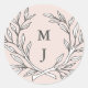 Blush Rustikale Monogramm-Krautaufkleber Runder Aufkleber