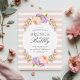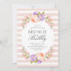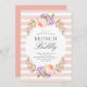 Erschwingliche, individuell bedruckte Muttertagsbrunch und Blubbly Einladungen personalisiert mit Ihren Veranstaltungsdetails. Dieses hübsche botanische Design besticht durch einen Aquarellrahmen aus Pfirsich- und Lavendelholz-Blume auf einem rot gestreiften Hintergrund. Verwenden Sie die Designtools, um den Text anzupassen, bearbeiten Sie die Schriftart und Farben oder fügen Sie Ihre eigenen Fotos zu einer eleganten Feder Blumenbrunch Party Einladung.
