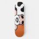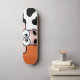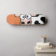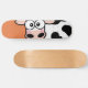 Blushing Kuh Skateboard Deck. Das Design ist eine peinliche schwarz-weiße Kuh auf einem orangefarbenen Hintergrund. Design © Lisa Marie Robinson
