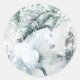 Blustering Winter Wald Wald Weißes Pferd Runder Aufkleber
