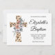 Eine moderne, mädchenhafte religiöse Taufe für sie. Aquarellleopard und Blumenkreuz auf der Vorderseite mit einem blasssilbergrauen Hintergrund (Sie können in Weiß wechseln). Passen Sie die Kalligraphie und den modernen Text für Ihre besondere Veranstaltung an. Übertragen Sie das Cross-Image auf kleine und mittlere Geschenke, falls nötig.