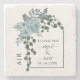Dusty blauen Aquarellfarben Blume, Bogen und Initialen Frühjahr Hochzeit Untersetzer. Dieses schöne Hochzeitsdesign besticht durch einen Bogenrahmen mit blauen Kakteen-Blume und Blätter an der links Ecke und Ihren Initialen. Die Namen sind in Skripttypografie.