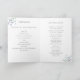Elegante gefaltete Hochzeitsprogramme mit einem zarten, blumenfarbenen Aquarellrahmen in Blau und Weiß. Personalisieren Sie Ihre Zeremonie Details in Grau und ein Dankeschön-Nachricht auf der Rückseite.