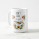 Ein charmantes Tasse-Design mit einer zufriedenen Biene in einer Hängematte unter den Gänseblumen, ideal, um Ihrem Morgenkaffee oder Tee-Ritual ein Gefühl der Ruhe im Garten zu verleihen.