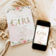 Blush Blumengold Es ist ein Mädchen Babydusche Einladung. Florales Gold schreibt Baby Dusche Einladung. Matching-Elemente verfügbar.