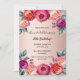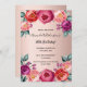 Eine elegante Einladungskarte für eine 50. Geburtstagsparty (oder jedes Alter). Mit zeitgenössischem Rosa, lila und in Rose goldfarbenen Blume, Blumen als Dekoration. Eine schicke Rose goldener Farbverlauf Hintergrund. Der Name wird mit einem schwarzen handgeschriebenen Stilskript geschrieben.