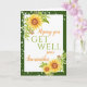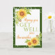 Eine hübsche Get Well-soon-Karte mit Aquarellgelben Sonnenblumen, Blattwerk und Streichern und einem grünen Rand. Eine nette Art und Weise, Ihre Gedanken zu schicken und gute Wünsche zu einem Mitglied der Familie oder Freund zu bekommen. Jeder Text kann individuell angepasst werden, dann personalisieren mit einem Namen und Nachricht.