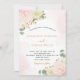 Ein weißer Hintergrund mit weichem Rosa und Rose goldener Aquarellpinsel. Die Einrichtung besteht aus Blume in Aquarelltönen, Rosen in Rosa Blumen, weißen Orchideen und gelben Gerbera, Eukalyptusgrün und Imitaten mit goldenen Zierpflanzen. Personalisieren und fügen Sie Ihre Namen und Hochzeitsdetails. Schwarze und goldfarbene Buchstaben.