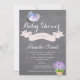 Rustikale Vintage, hellblaue Lavendel-Blume, Bänder und Doodle Herzen Baby Dusche Einladung Vorlage auf dunkelgrauem Chalkboard Hintergrund. Ideal für eine schicke Aquarellabbildungen stilvoll Vintages rustikales Land | Frühsommer | auf dem Land im Garten Baby oder Mädchen Dusche Party.