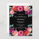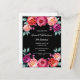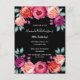 Eine elegante Einladungskarte für eine 50. Geburtstagsparty (oder jedes Alter). Mit zeitgenössischem Rosa, lila und in Rose goldfarbenen Blume, Blumen als Dekoration. Ein schicker schwarzer Hintergrund. Der Name wird mit einem weißen handgeschriebenen Stilskript geschrieben. Zurück: Normaler Hintergrund auf Postkarten.