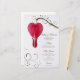 Das hübsche "Red Bleeding Hearts Wedding Menu" mit den Details der Mahlzeit, die Sie bei Ihrer romantischen Verlobungsfeier, Brautparty Mittag- oder Heiratsabend Empfang servieren, indem Sie den Salat oder den ersten Gang, Vorspeise oder Zweitgang und Dessert oder dritten Gang hinzufügen. Dieses elegante, blumengeschmückte Hochzeitsmenü zeigt ein Blumenfoto einer Blüte des roten Herzens oder einer Didentra mit braunen Wirbel an den Ecken und einem weißen Hintergrund.