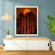 Dieses unheimliche Bild erfasst das Wesen eines Blutmondes, der über einen dunklen und geheimnisvollen Wald aufsteigt. Die Silhouette der Bäume gegen den hellen orangefarbenen Mond schafft eine eindringliche und stimmungsvolle Szene. Ideal für Halloween-Dekorationen, unheimliche Wohngestaltung oder einen Fan des Übernatürlichen.
