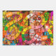 The collage is awash with color and texture. A mix of game boards with distinct themes lines the periphery, adding depth and diversity to the composition. The artwork on these boards varies from intricate, hand-drawn illustrations to modern, digitally designed visuals.