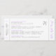 In der hellen und modernen lavender lila Orchidee lila, silber und grau, hat dieser kreative Reise-Thema Boarding Save the Date für eine Hochzeit in Urlaubsort Platz für ein Foto und Raum für Reiseplanungs-Details für Ihre Gäste. Ein romantisches Flugzeugsymbol und echte Retro-Ticketdetails wie kleine Pfeile, ein Bar-Code und eine Box für eine Sitzbelegung in einem Vintagen Computer-Schriftart runden das Aussehen ab. Hochzeiten in Urlaubsort benötigen ein wenig mehr Planung, um den Gästen alle Informationen über die Unterkunft früher als eine Hochzeit vor Ort mitzuteilen. Achten Sie also darauf, alles einzuschließen, was Sie können. Wenn du will, das Wort einfach herauszuholen, während du die Reise- und Ausflugspläne erarbeitest, kann das Design auf der Rückseite komplett gelöscht werden, indem du einfach auf 'Weitere Anpassung' klickst. Paper Grape Destinations on Zazzle ist spezialisiert auf die Einladungen zum Thema Reisen und Hochzeitsstipendium für die Abenteurer, Wanderlust Pärchen planen ihre Hochzeit im Ausland.