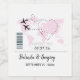 Dieses Design enthält ein Boarding Pass Thema. Es zeigt eine rosa Weltkarte mit zwei Flugzeugen, die eine Herzform haben, während sie um die Welt reisen. Dieses Ziel themed Hochzeitsdesign ist Set wie ein Boarding Pass mit dem Datum der Hochzeit personalisiert in den Plätzen. Ein romantisches Reiseziel-Design mit einer eleganten Touch. Ideal für eine Hochzeit in Urlaubsort, egal wo auf der Welt. Das perfekte Design für Hochzeitsweine während der ganzen Saison. Auch die passenden Hochzeitseinladungen und andere Schreibwaren sind verfügbar.