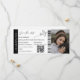 Moderner, minimalistischer Monogramm-Boarding: Hochzeitsfahrkarte mit schlichtem weißem und braunem Hintergrund, Foto des verlobten Ehepaares, Flugzeug mit Loop-Trail und leicht verstellbarer Save the Date Vorlage. Vergessen Sie nicht, den Text auf der Rückseite des Monogramms zu aktualisieren.