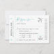 Boarding Pass Ticket RSVP Card mit einem niedlichen und romantischen Herzlogo in Imitate silber mit einem türkisfarbenen, aquamarinen, modernen Drehbuch-Schriftart. Diese Version bietet Platz für die Auswahl von Mahlzeiten ODER passen den Raum an, um Informationen von Ihren Gästen zu sammeln, wie Anreisedatum, das Hotel, das sie gebucht haben, oder wenn sie kommen auf vorgeplanten Exkursionen oder ähnlichen Veranstaltungen während sie in der Stadt. Unsere Flugzeug Ticket-Antwortkarten sind absichtlich einfach, elegant und formell aussehend und ähneln immer noch einem authentischen Ticket, sodass sie mit einer Vielzahl von Zieleinladungsthemen arbeiten und gleichzeitig einen kreativen Spaß für Ihre Hochzeit bieten, die die Gäste mit Ihnen feiern werden. HINWEIS FÜR DESIGNER: Bitte Karo die Größe der Einladungen an und lege Karten ein, um sicherzustellen, dass sie gut stapeln und in die Briefumschläge passen. Wenden Sie sich an den Designer, wenn Sie Fragen zur Größenordnung haben oder Hilfe beim Gebäude einer kompletten Suite von Reisemagazin oder Hochzeit in Urlaubsort-Einladungen oder für individuelle Farbanfragen benötigen. Weitere Farben und Formatoptionen finden Sie im Paper Traube Destinations Zazzle Designer Shop. ©Paper Grape Destinations beginnend 2006 unter Schwestergesellschaft. Alle Rechte vorbehalten.