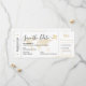Boarding Pass Flugzeug Ticket Save the Date Einladungskarte mit einer kleinen angehängten UAWG für eine Hochzeit in Urlaubsort mit einem romantischen Flugzeugsymbol und verblasstem goldenen Weltbilderhintergrund mit modernen, eleganten Drehbuchseiten und Informationen über Reisen und Unterkünfte für die Gäste, um ihre Reise zu planen, um Ihre Hochzeit inmitten eines Urlaubs zu feiern. Eines der vielen Themen der Reise sparen die Daten und Einladungen, die nach der direkten Zusammenarbeit mit kreativen und abenteuerlichen Paaren entstanden sind, die gemeinsam die Welt bereist haben oder sich während ihrer Arbeit in der Reisebranche kennengelernt haben. Wenden Sie sich direkt über den Zazzle Chat an den Zazzle Designer mit Ideen, wie Sie die Vorlage mit Ihren Hochzeitsdetails personalisieren können.