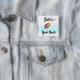 Im Nachhinein würde ich eher den Button mit Magnet bestellen... damit dieser bei jeder Kleidung angebracht werden kann. Sehr gute Bildqualität