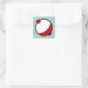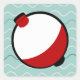 Ein Single roter und weißer Angelbober. Hellgrünes "Wasser" hinter gewellten Linien