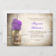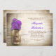 Arrière - plan romantique en bois rustique et bocal de maçon avec fleurs violettes invitation à la douche nuptiale. Je suggère un beau papier de texture de lin pour ce design.