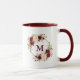 Elegante Watercolor Burgundy Floral Monogram Tasse - Burgundy Accent