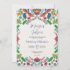 Dieses mexikanische farbenfrohe Botanische Ästhetik Boda Wedding Invitation Design zeigt eine lebendige und symmetrische Grenze mit lebhaften Pfauen an der Spitze, umgeben von stilisierten Blume, Laub und farbenfrohen Federn. Die Farbtöne Orange, lila, Grün und aquamarin, die in einem harmonischen Rahmen angeordnet sind, in dem ein sauberer, cremefarbener Textbereich in der Mitte verlassen wird. Die Gesamtästhetik zeichne Inspiration aus der Volkskunst und verleiht dem Stück einen festlichen, feierlichen und naturlich inspirierten Charme, der sich perfekt für fröhliche Veranstaltungen wie Hochzeiten oder kulturelle Feiern eignet.