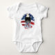 American eagle set in front of the stars and stripes of the American flag with USA text.