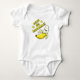 Un costume adorable pour bébés, avec un joli dessin animé, banane jaune kawaii joyeux avec les sourires les plus doux, de grands yeux ronds et mi-pelée. Au-dessus de lui, en lettres jaunes avec une ombre noire sur laquelle on peut lire 'Lets Go Bananas ! ' Deux étoiles jaune vif sont de part et d'autre des mots.