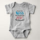 La conception de la combinaison bébé adorable est entièrement personnalisable, ce qui vous donne la possibilité de laisser la formulation telle quelle ou de la remplacer par votre propre message plus personnel. L'exemple de message indique : « Je sais que je suis un BAZAR, mais vous savez que vous m'AIMEZ quand même ! » Si vous choisissez de modifier la formulation, gardez à l'esprit que les polices resteront les mêmes.