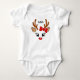 Ceci est un body bébé renne adorable avec le visage d'un renne fille portant un nœud rouge. Cela fera un merveilleux cadeau de Noël personnalisé pour un bébé fille avec le nom qui peut être personnalisé.