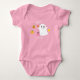 Un body bébé rose mignon pour Halloween pour des jumelles avec un petit fantôme. Personnalisez-le avec un nom ou laissez 'Sœur 1' pour s'amuser.