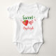 Bodysuite bébé fraise Berry doux Baby girl Bodysuit Sweet one baby bodysuite. Conçu pour bébé fille 1er anniversaire premier anniversaire. Ce petit bodysuit de fille est une idée cadeau parfait pour la fête de premier anniversaire de la baie spéciale. Il comprend le nom de la fille, Sweet ONE texte et grande fraise rouge au lieu de la lettre O. Choisissez votre produit ou style et l'acheter ou le cadeau.