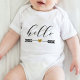 Bienvenue dans le monde avec cette adorable flèche "Bonjour" avec votre costume de bébé coeur. Le design comporte une flèche mignonne et graphique de coeur avec le mot "Hello" dans un script moderne et ludique. Ce costume de bébé fait un cadeau réfléchi et pratique pour les nouveaux parents. Pour customiser ce modèle, vous pouvez cliquer sur "Personnaliser ce Modèle", puis sélectionner "Modifier à l'aide de l'outil de conception". Cela vous permettra d'ajouter ou de supprimer n'importe quel texte, de modifier le style de police, la taille et la couleur, et de repositionner le texte et le motif comme souhaité. costume bébé, bonjour bébé, bonjour bébé, bonjour, flèche design, coeur, nouveau cadeau bébé, script, mignon, vêtements pour bébé, vêtements pour nouveau-né, cadeau de baby shower, sexe neutre, vêtements pour bébé confortables, Zazzle.